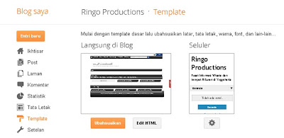 2. Pada Dasbor blog kawan, pilihlah Tata Letak (klik opsi lain tepatnya sebelah kiri lihat blog)